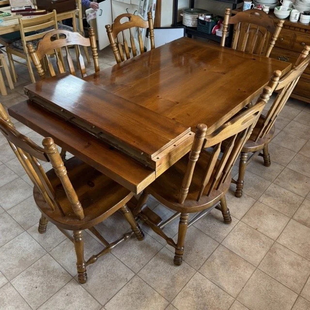 · Solid wood country style table with six chairs and two leaves - $300
