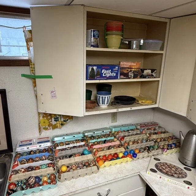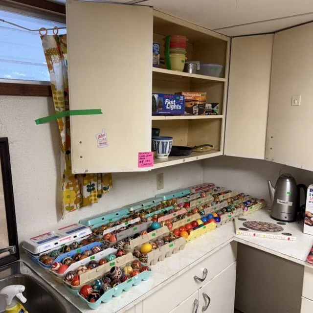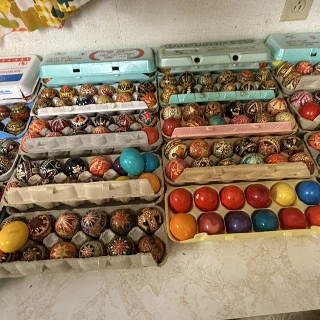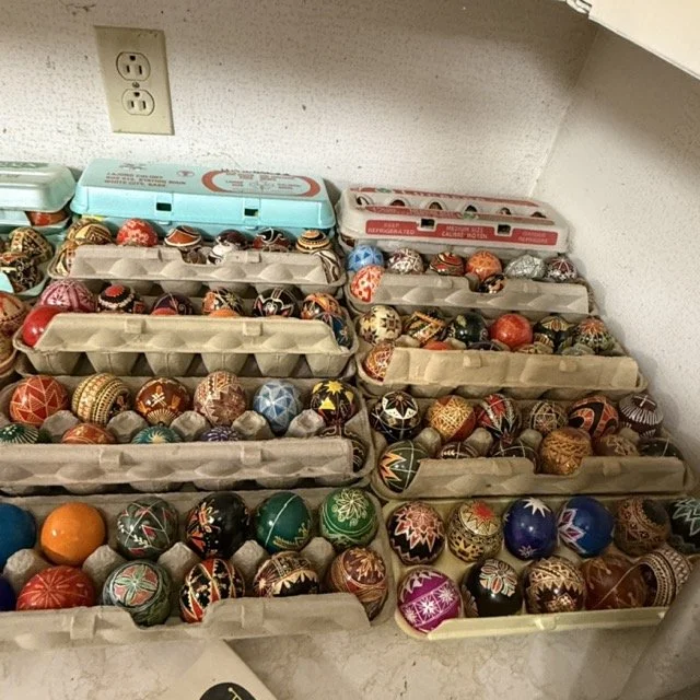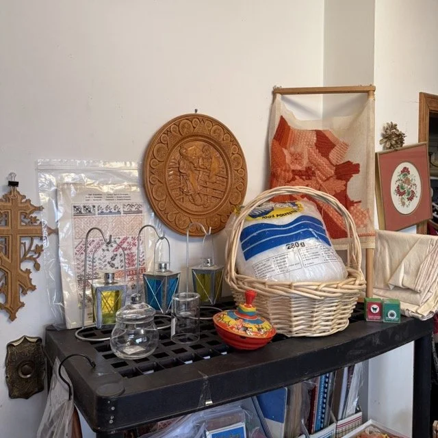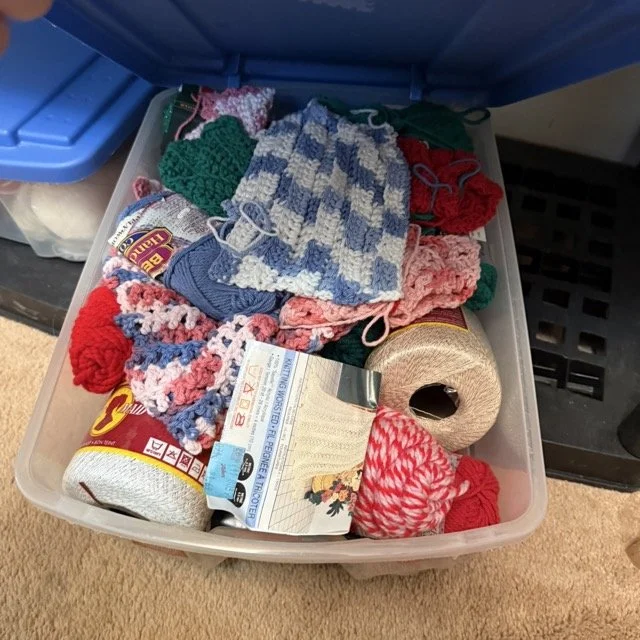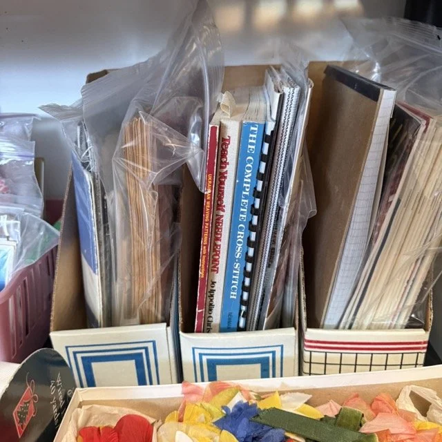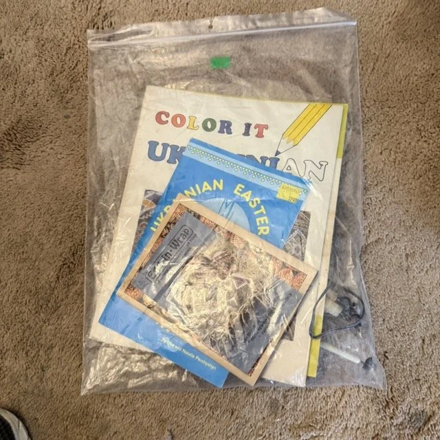Crafting supplies like Crosstitch, tons of yarn, Ukrainian Easter, egg, crafting, sewing and more