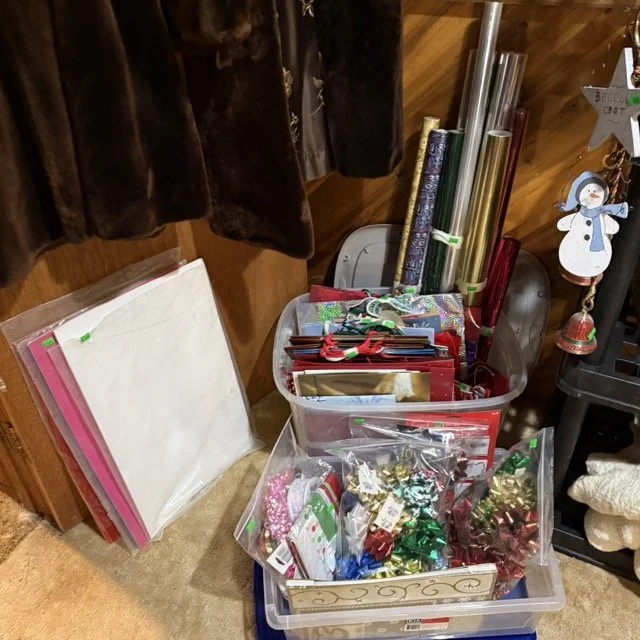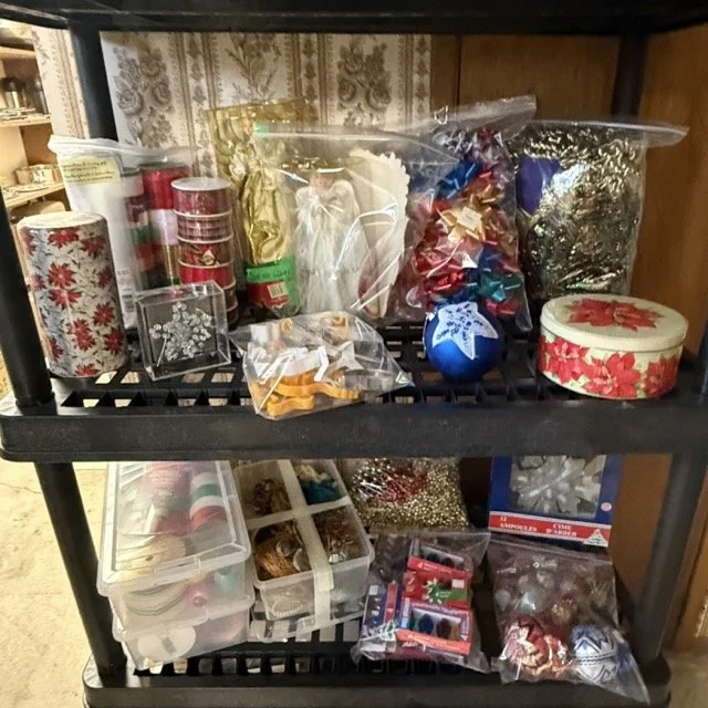 Christmas decorations and wrapping supplies