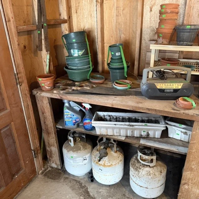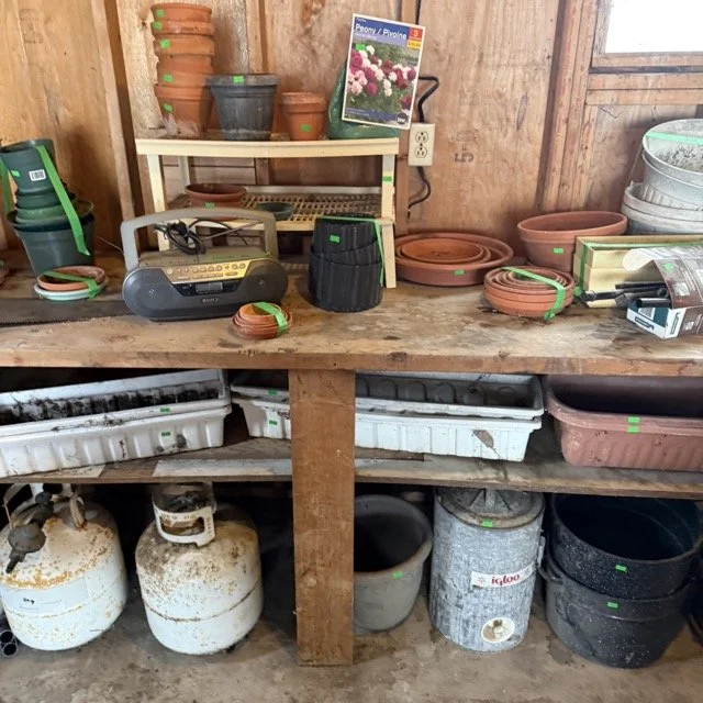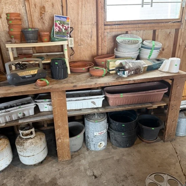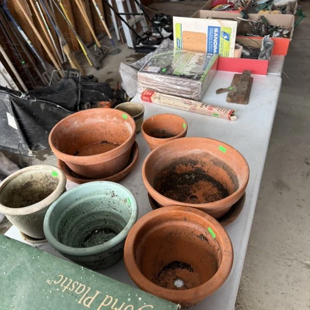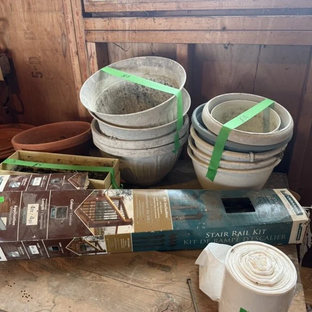 Miscellaneous gardening supplies and flower pots