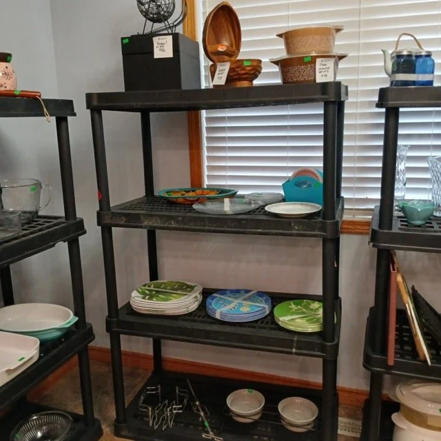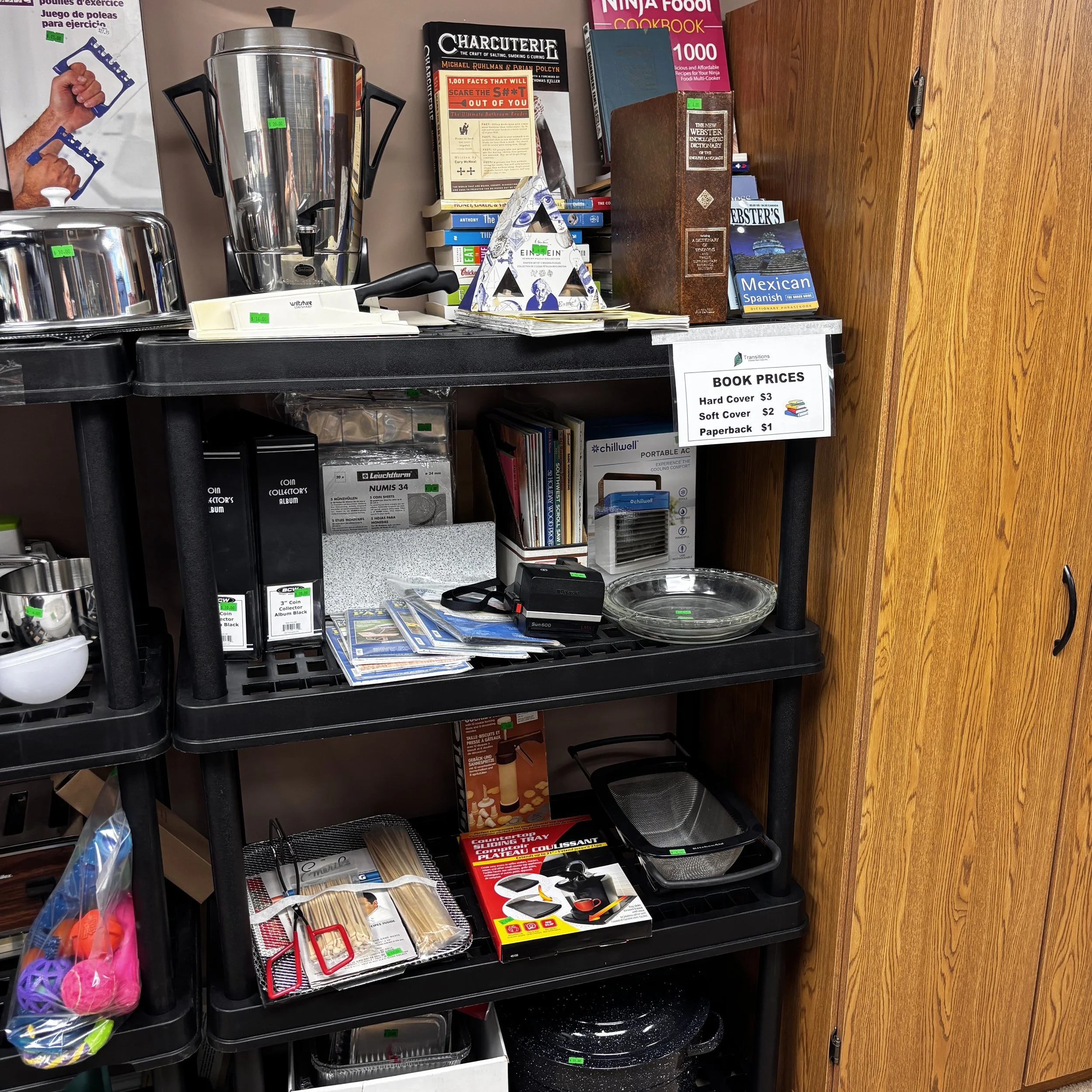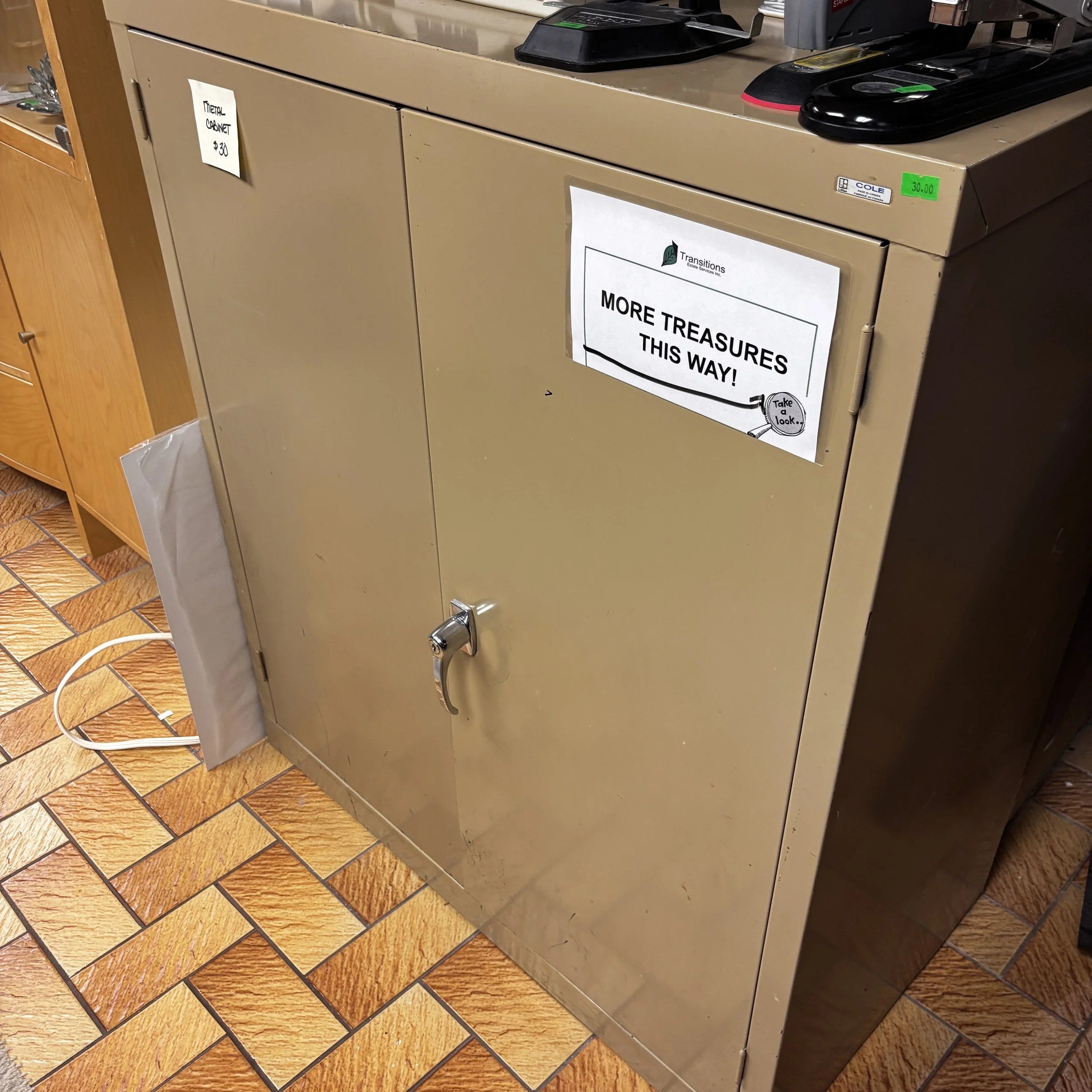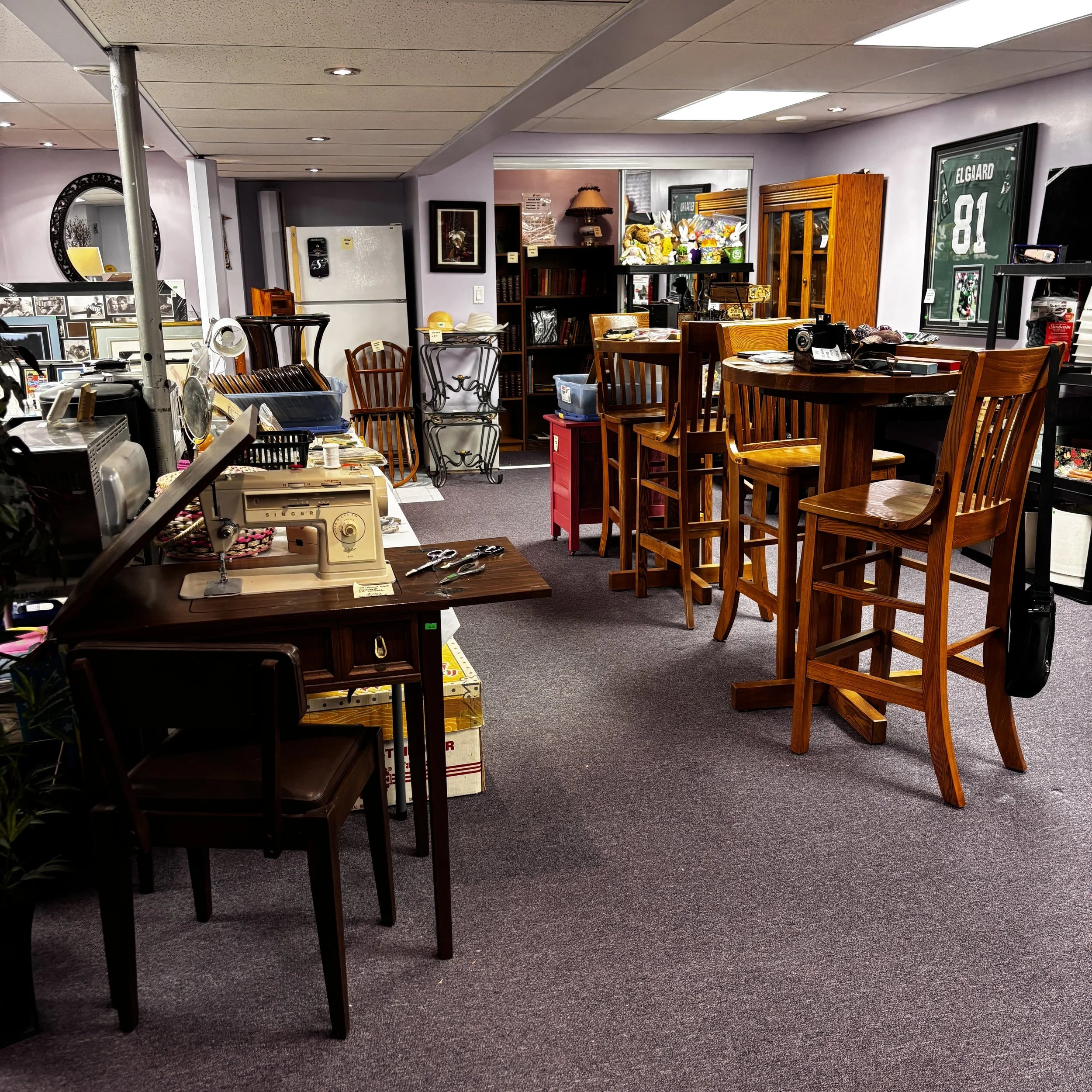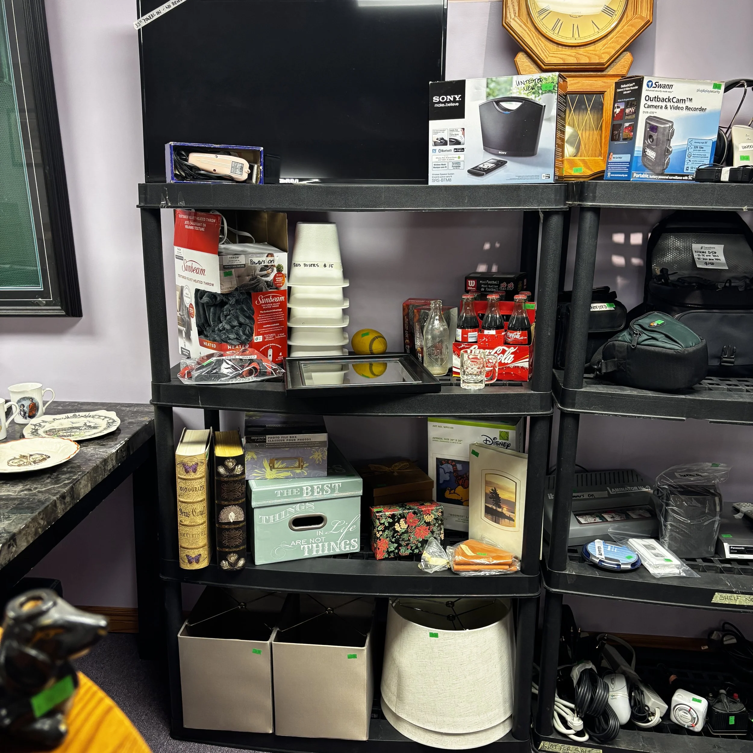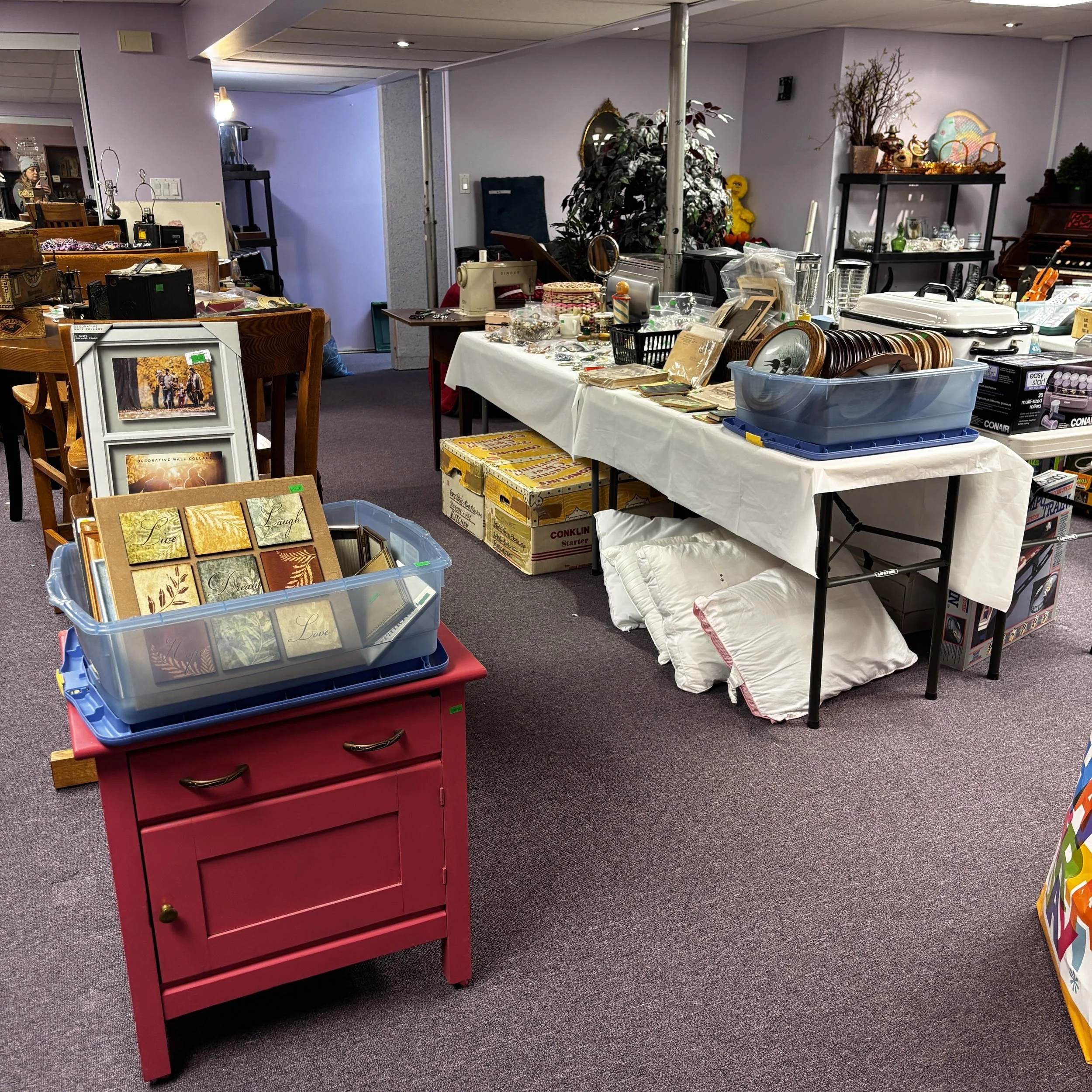 There is also tons of modern day furniture, household supplies and decor as well as a room full of office supplies. There are also several bookshelves, wardrobes and storage cabinets available!