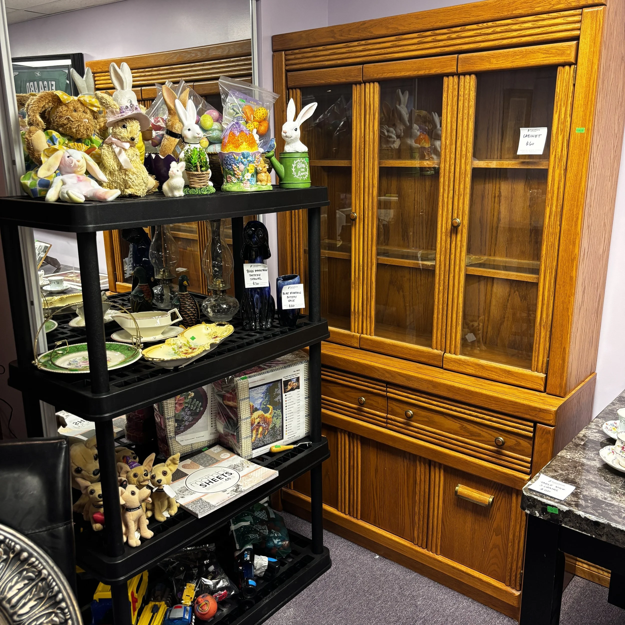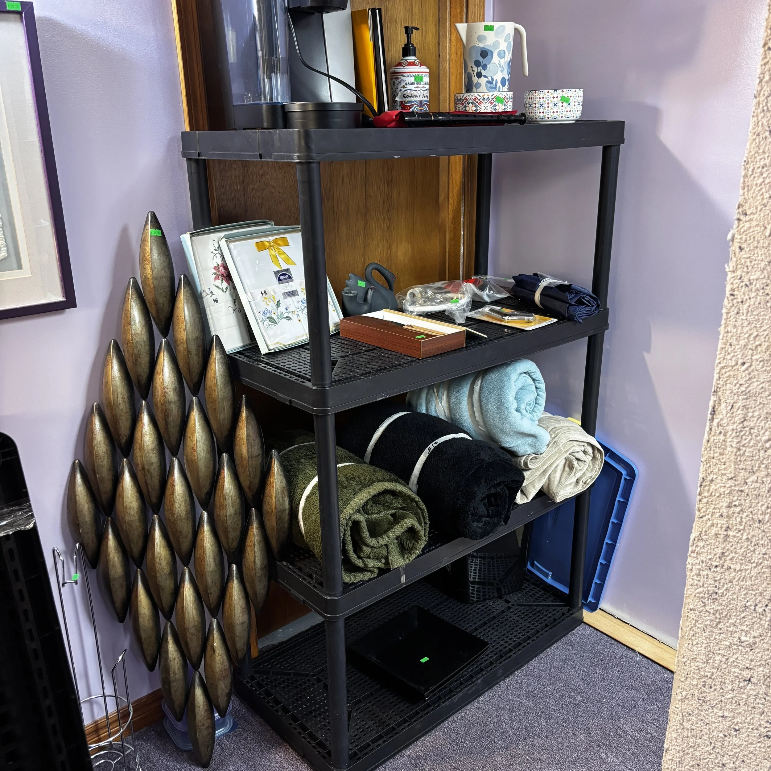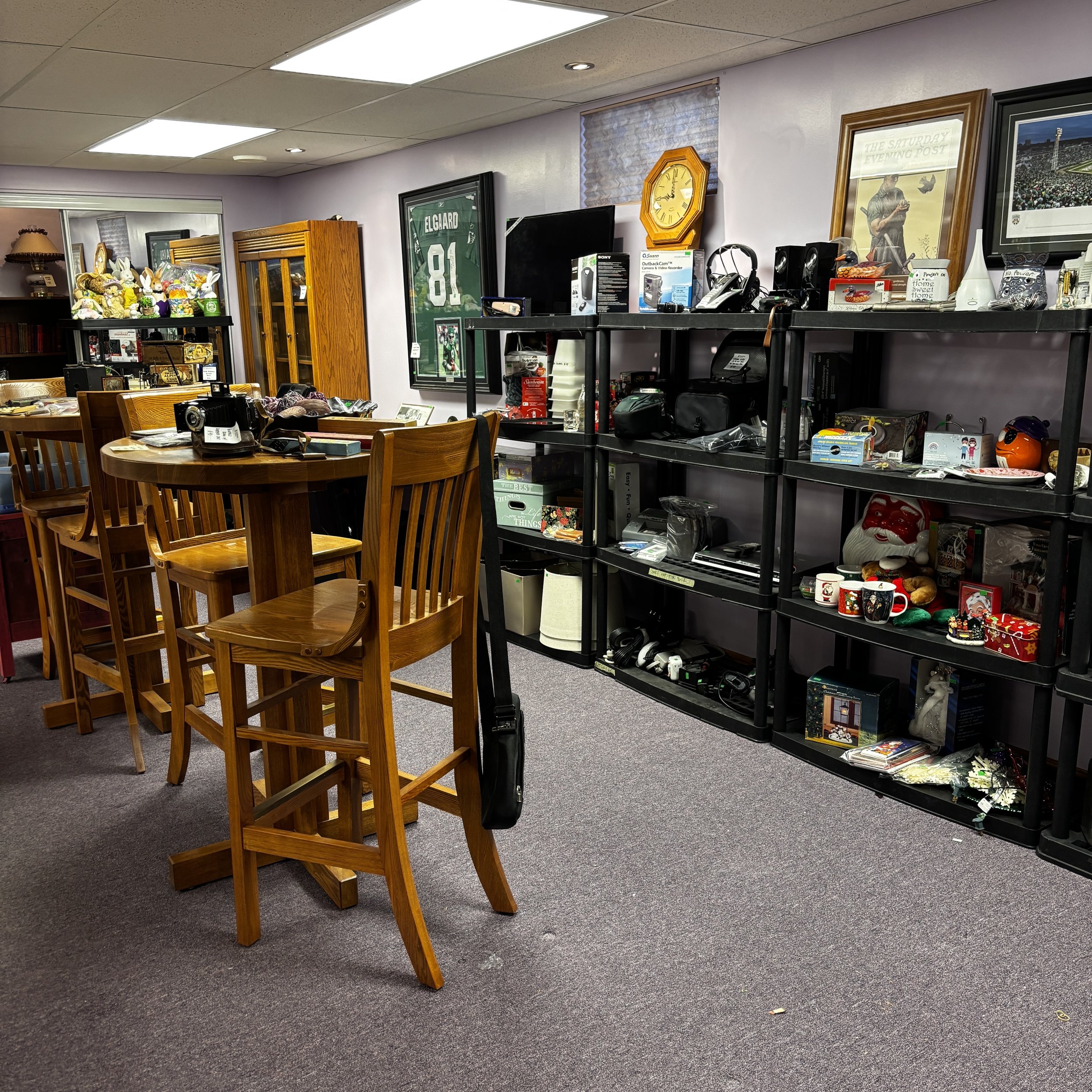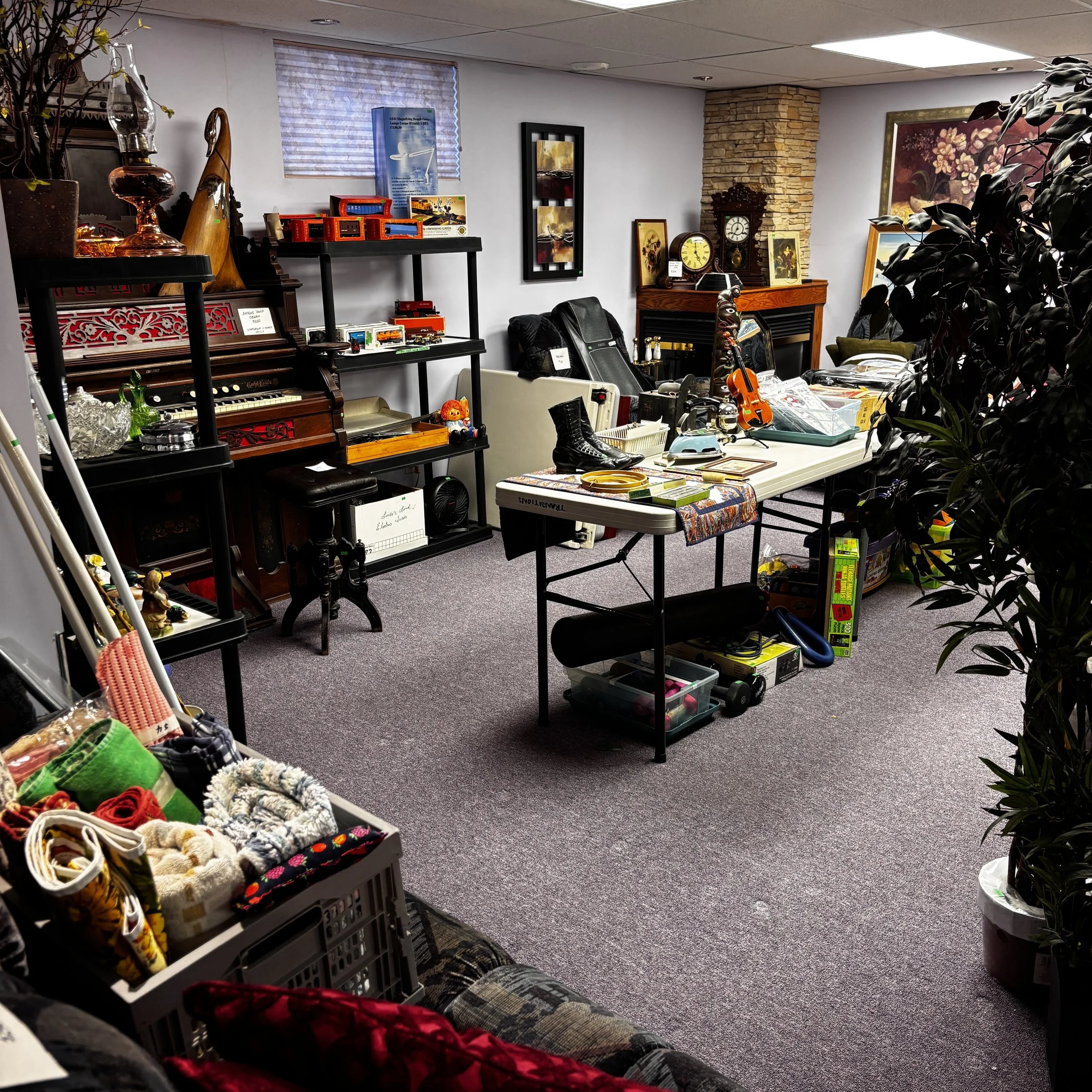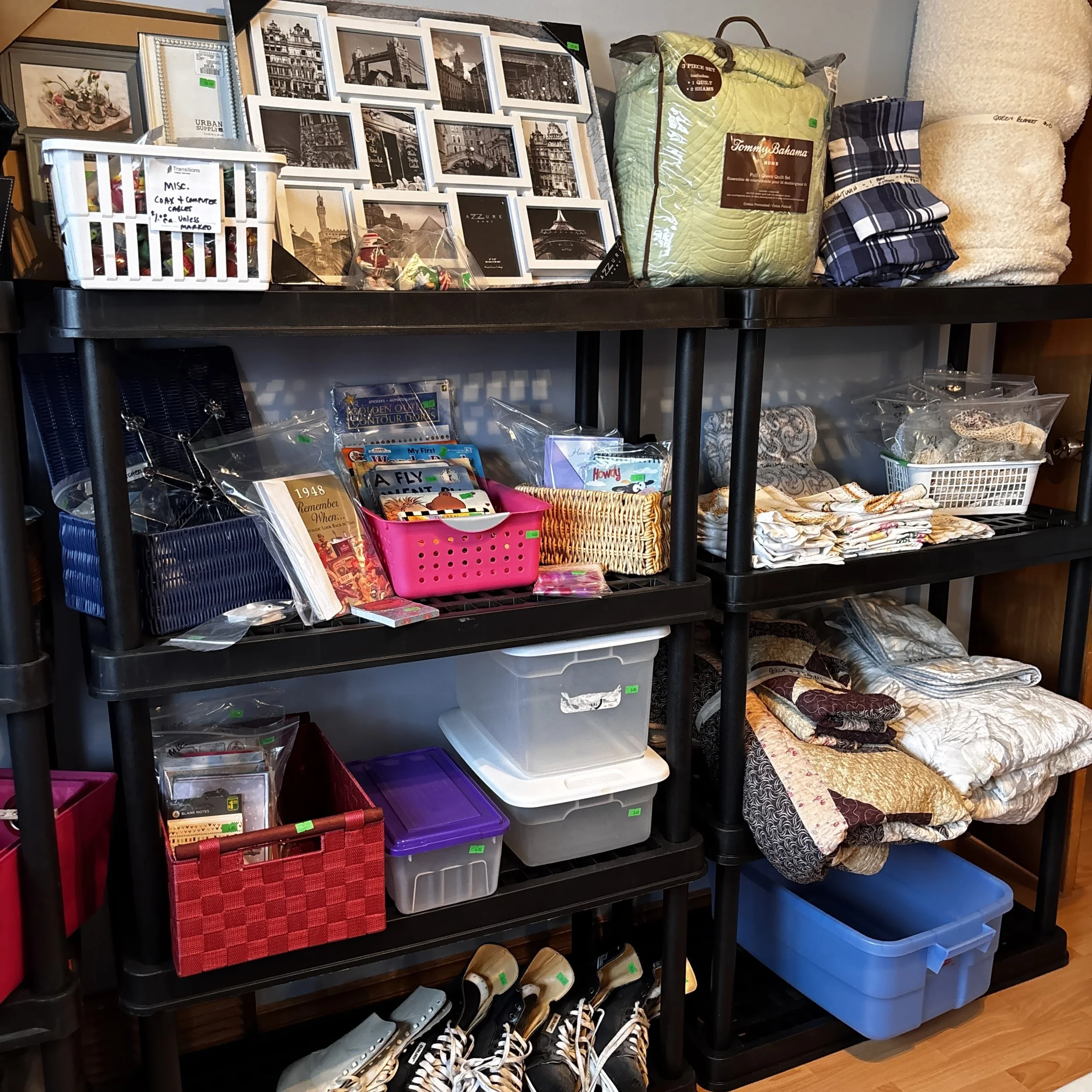 There is also tons of modern day furniture, household supplies and decor as well as a room full of office supplies. There are also several bookshelves, wardrobes and storage cabinets available!