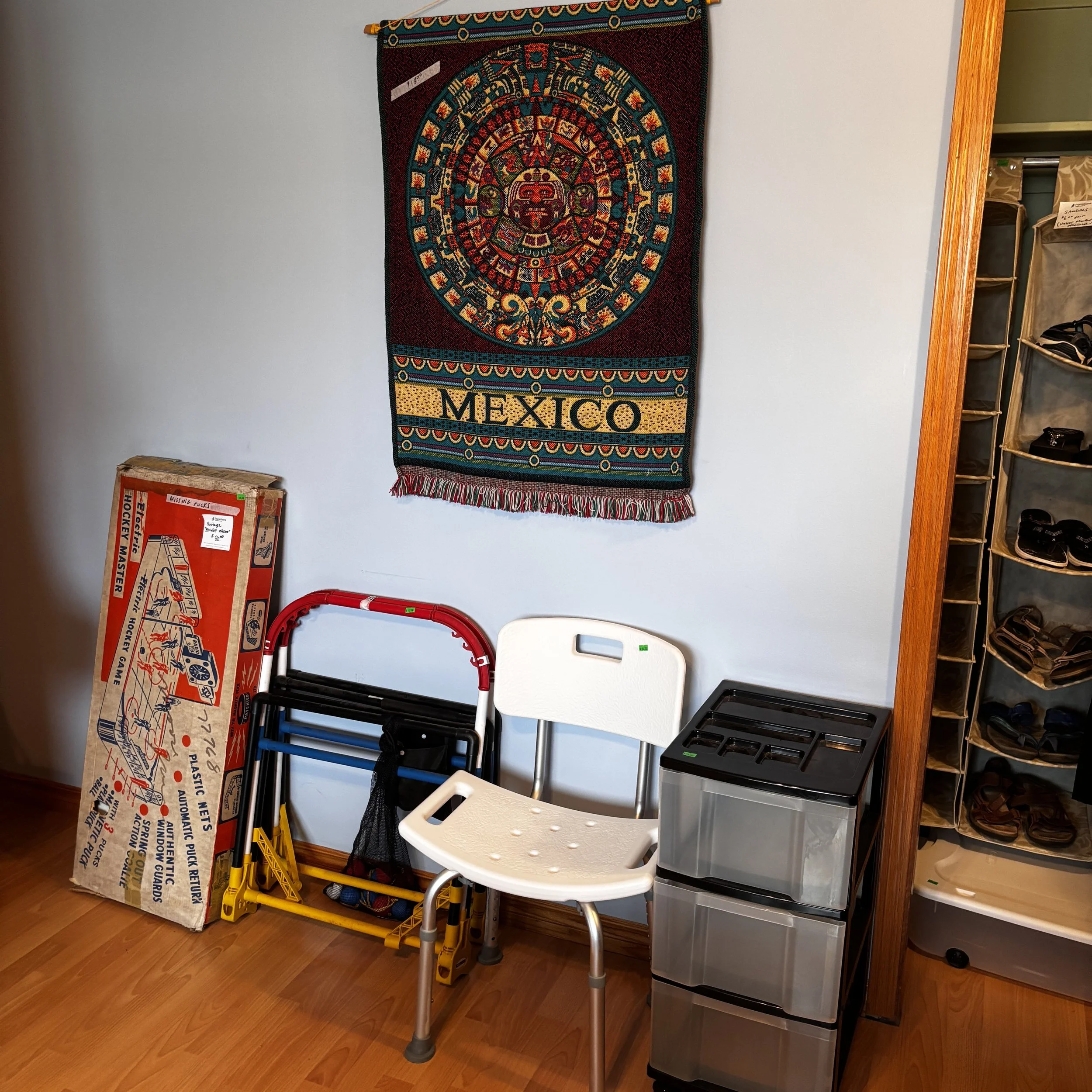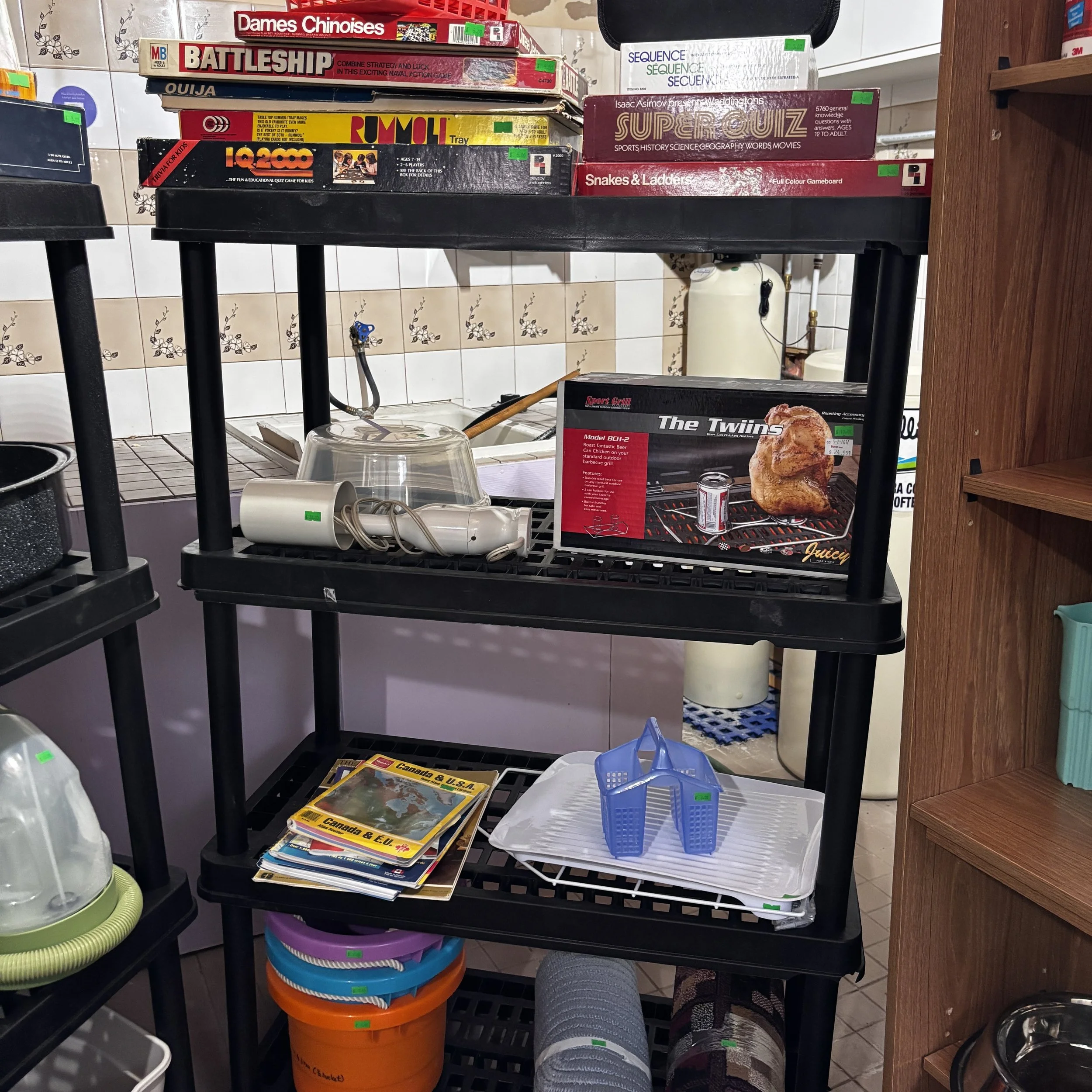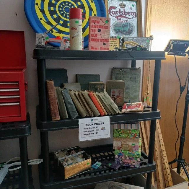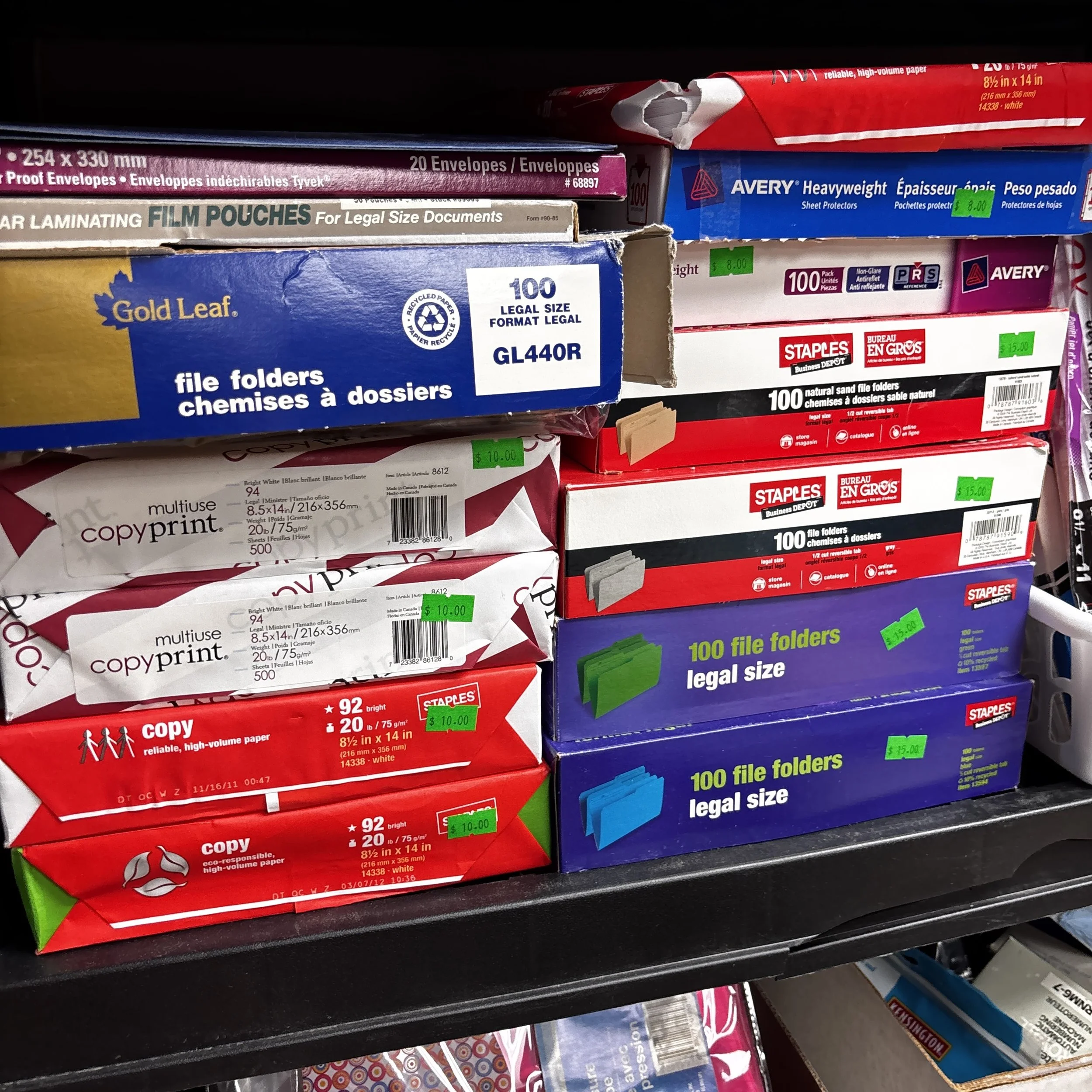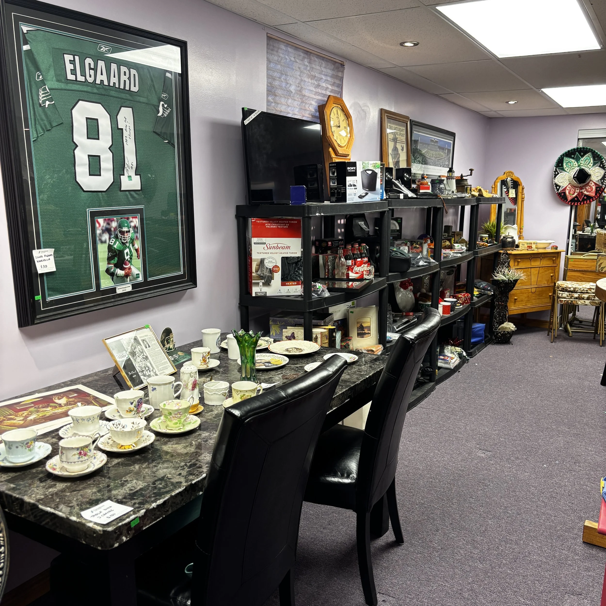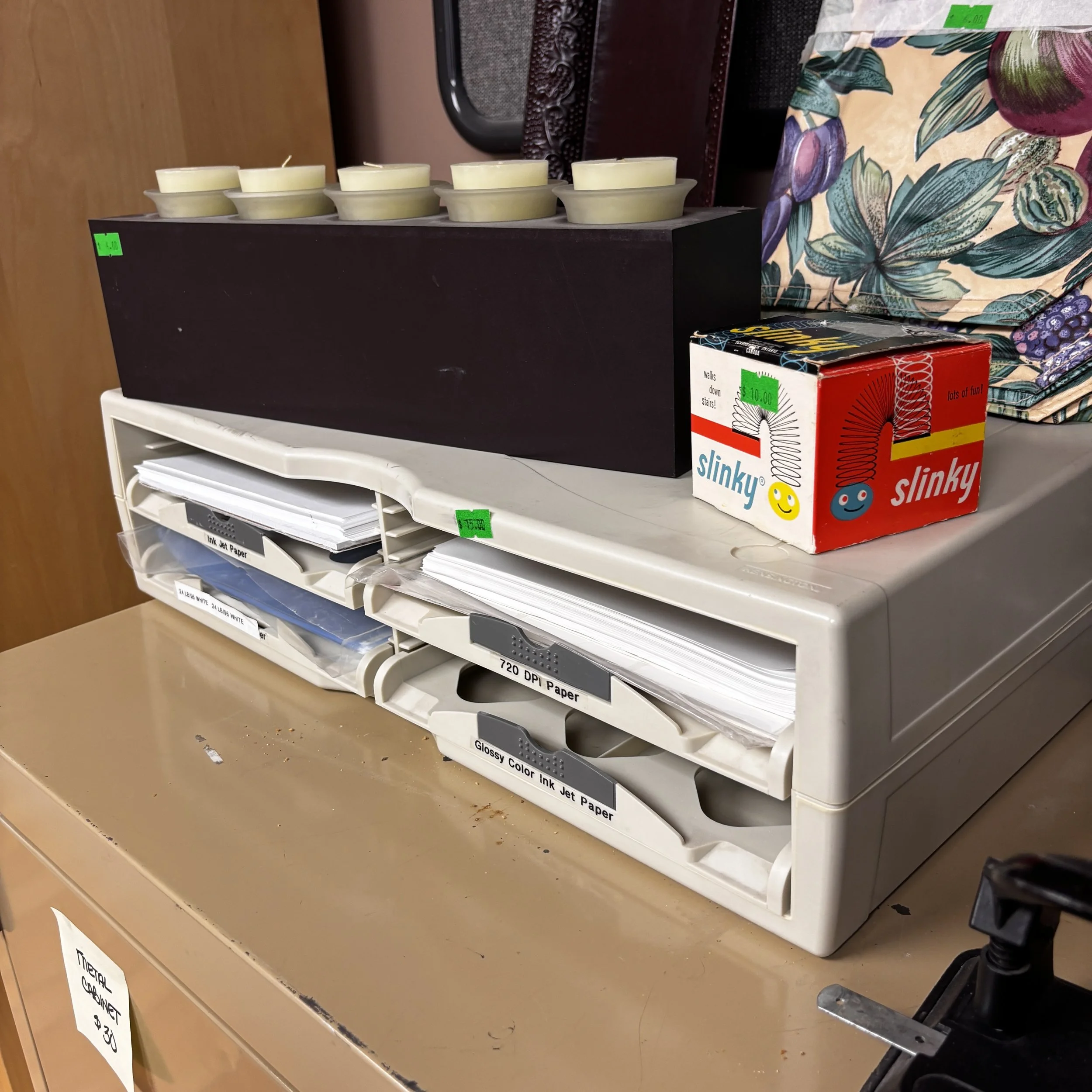 There is also tons of modern day furniture, household supplies and decor as well as a room full of office supplies. There are also several bookshelves, wardrobes and storage cabinets available!