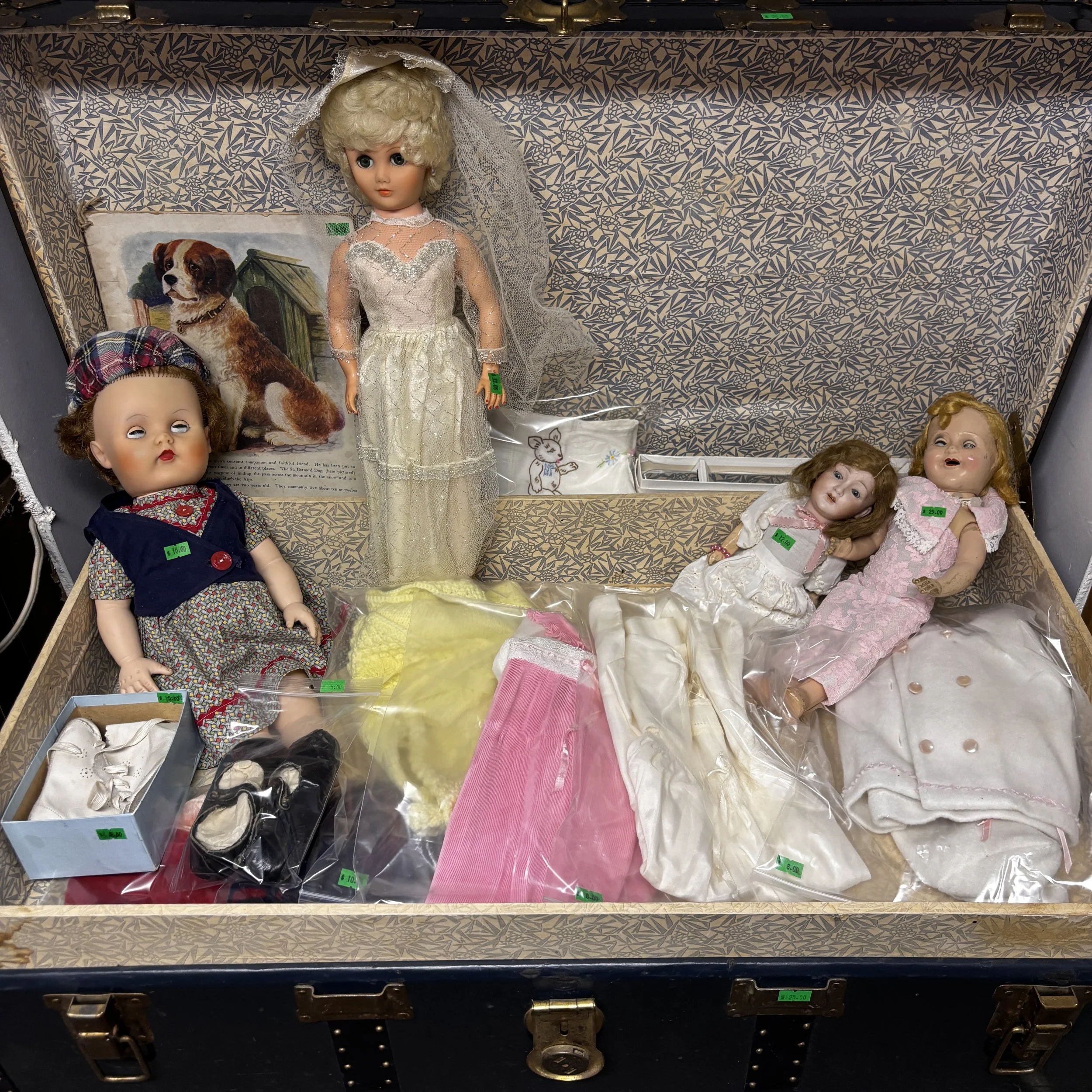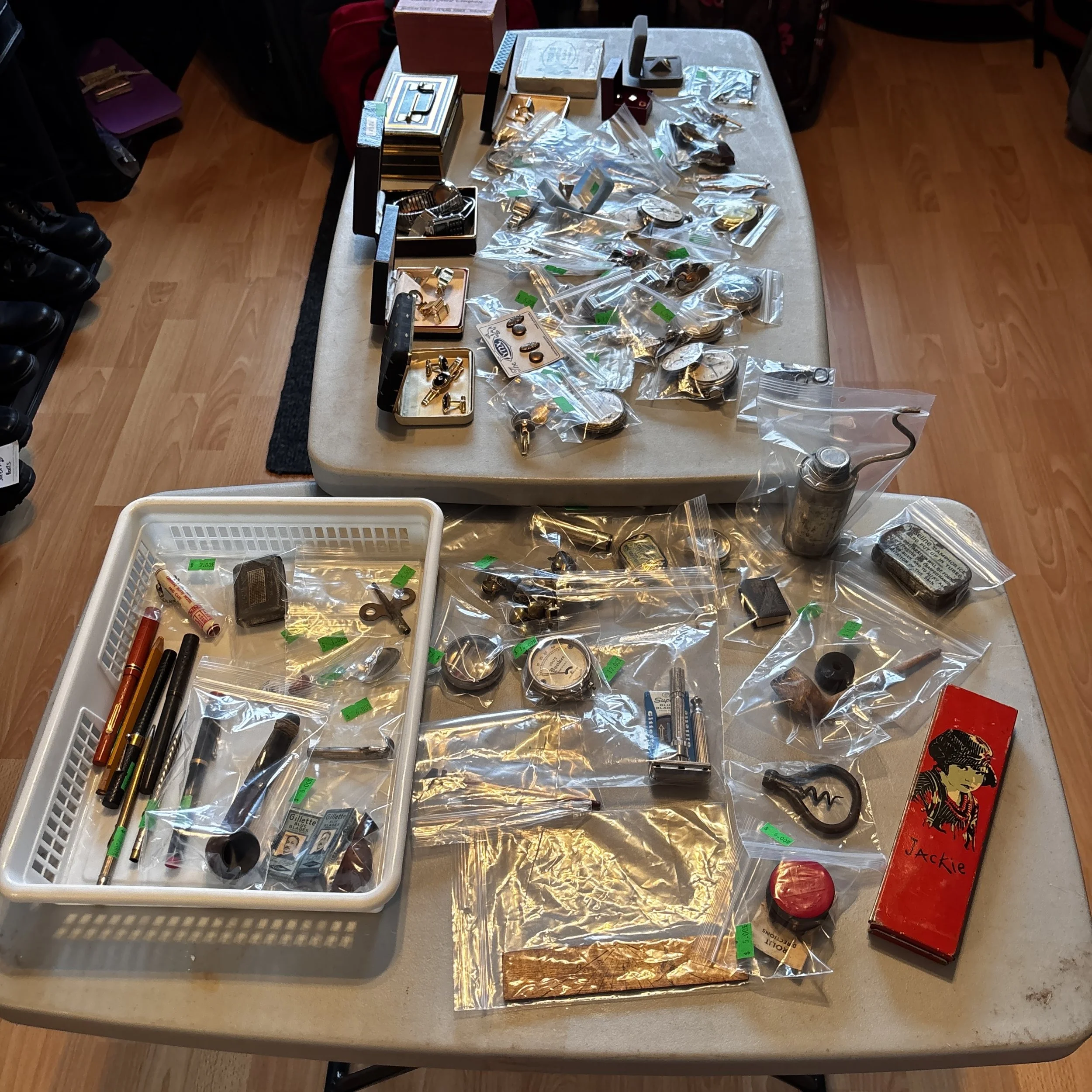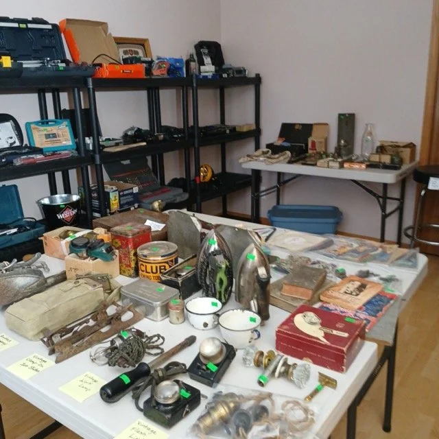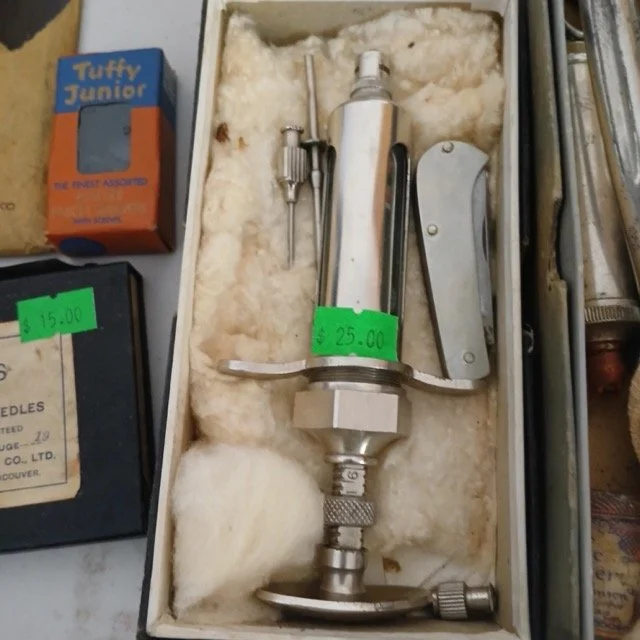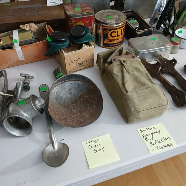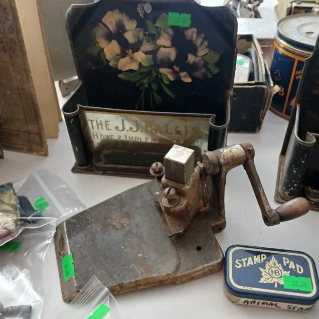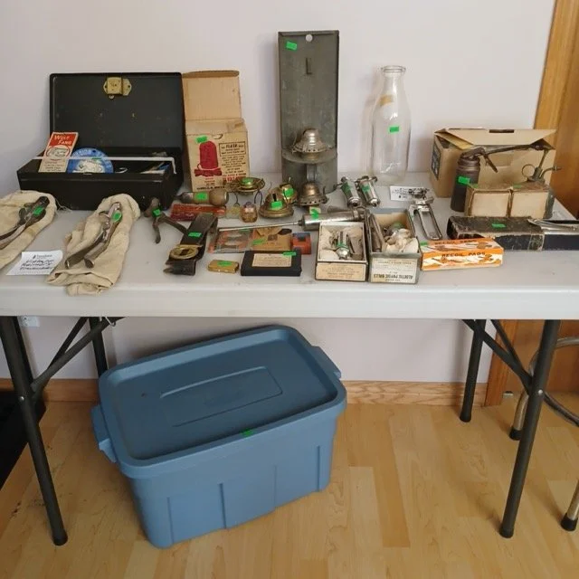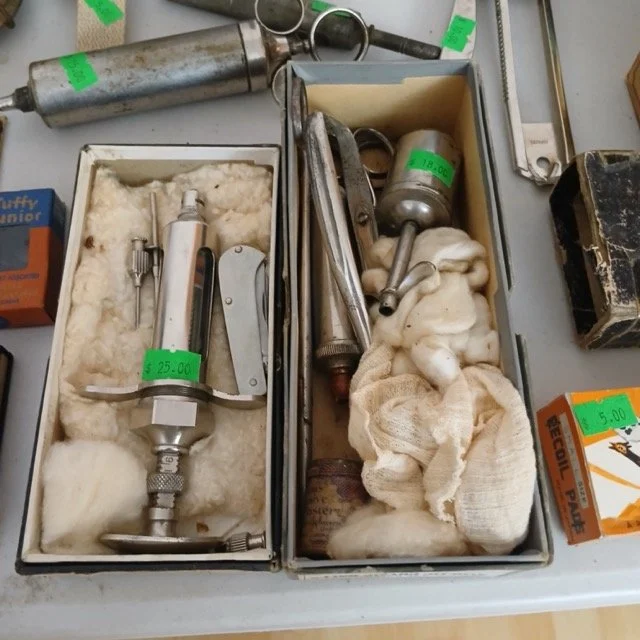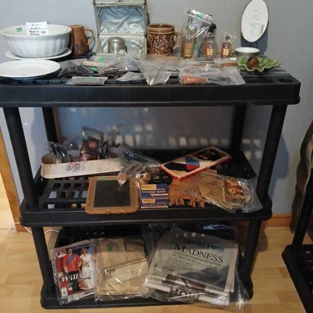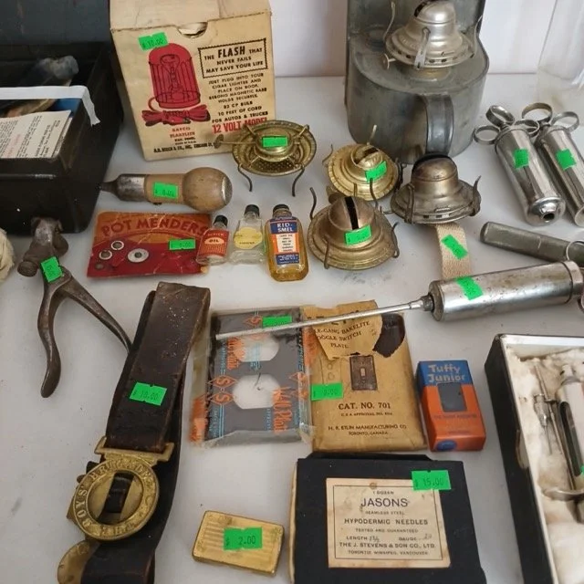 This sale will feature hundreds of vintage and antique items from the late 1800’s and up such as jewelry, pocket watches, tins, sewing supplies, post cards and photos, trinkets of all kinds, records, a pump organ, medical/veterinary supplies, tools, electrical supplies, books, household items and several pieces of beautifully refinished old tables, cabinets and other furniture.
