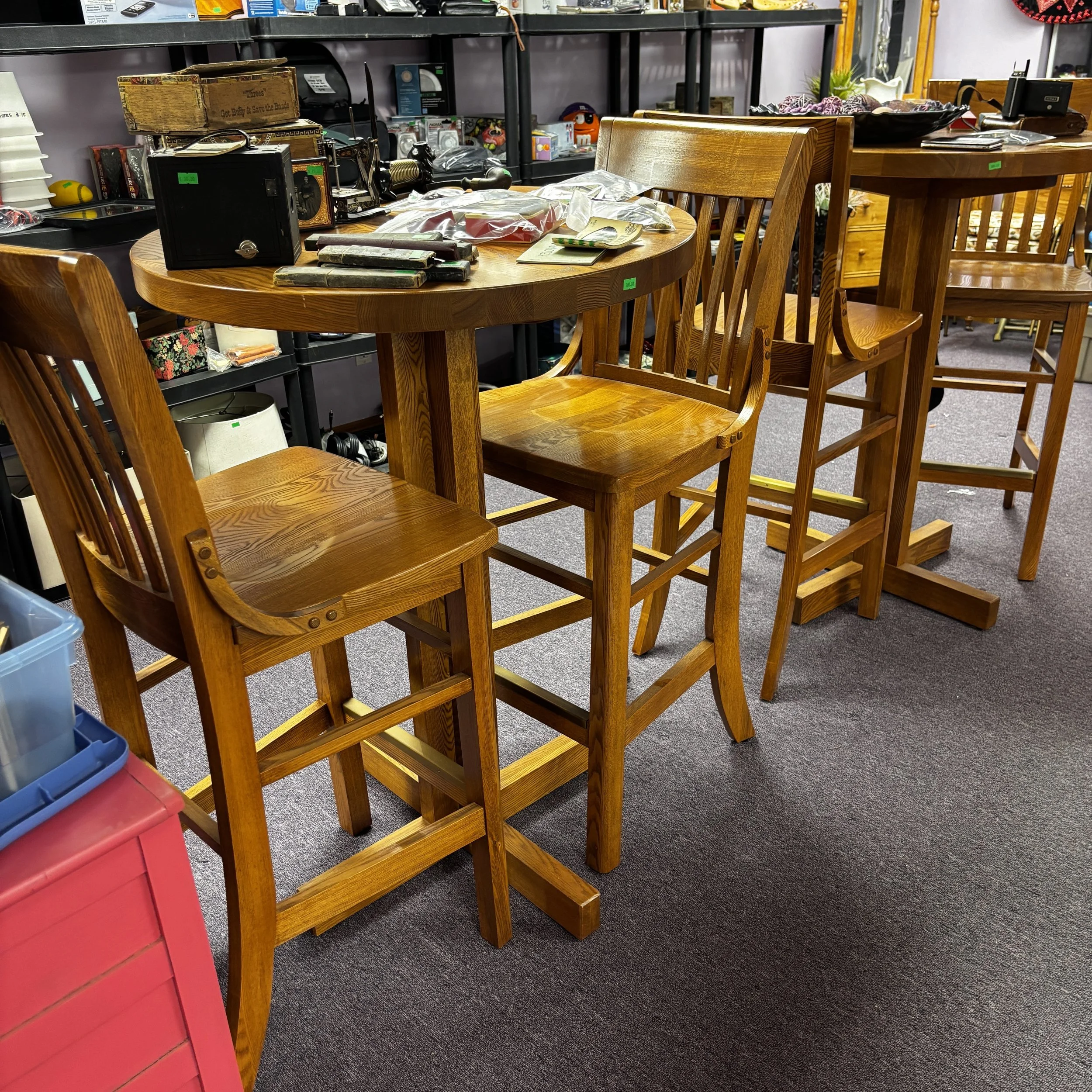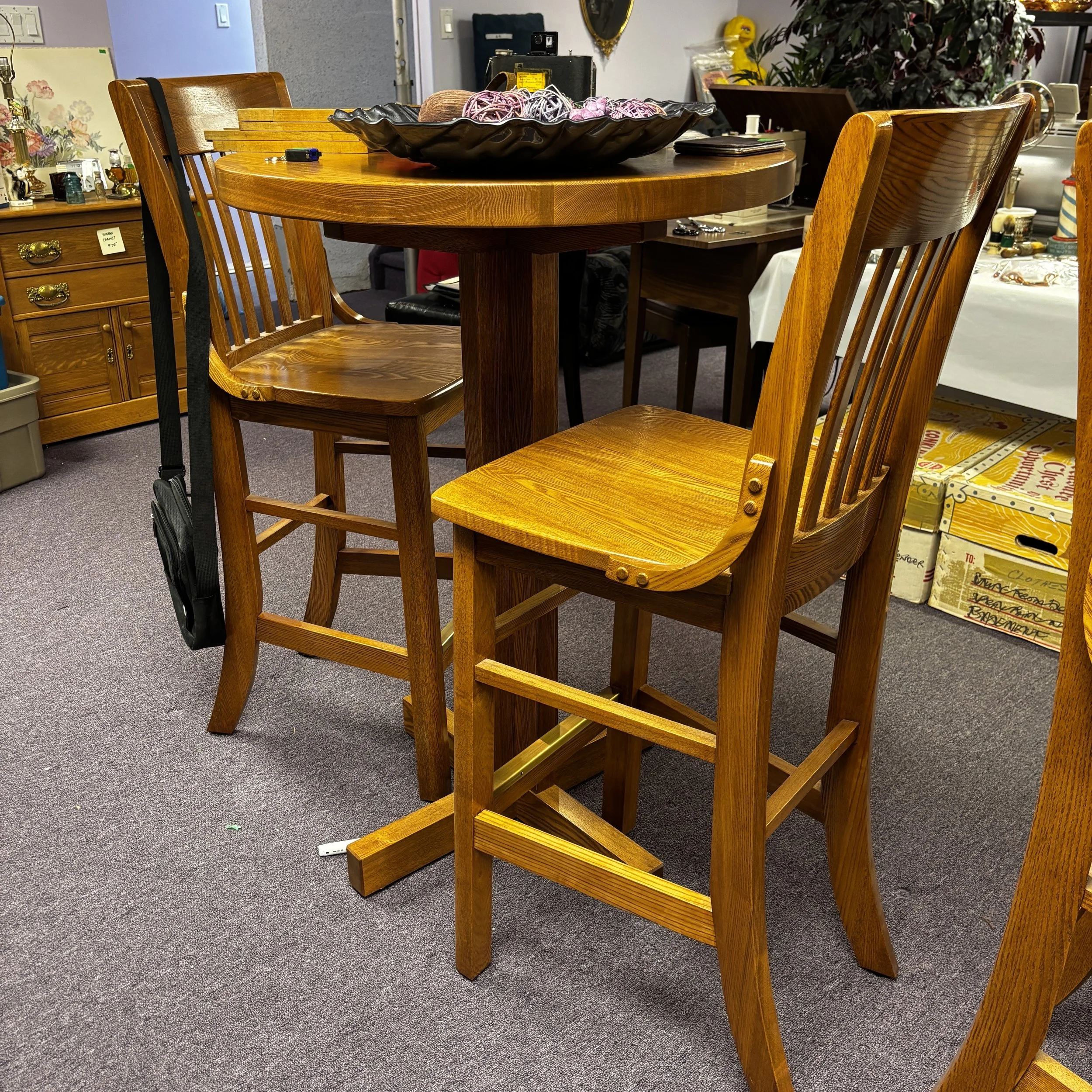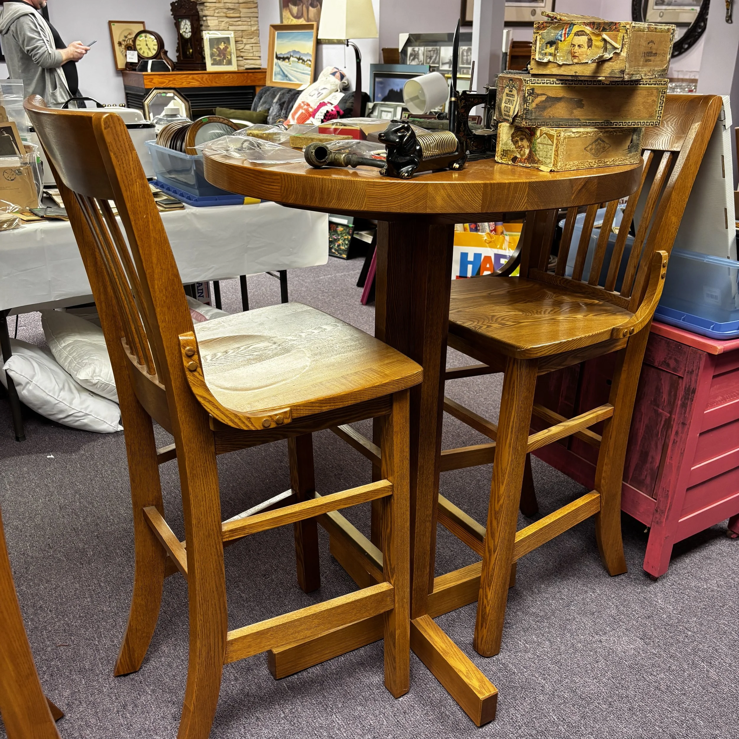 ︎Solid Oak Bar Tables with 2 Chairs $300 each (2 sets)