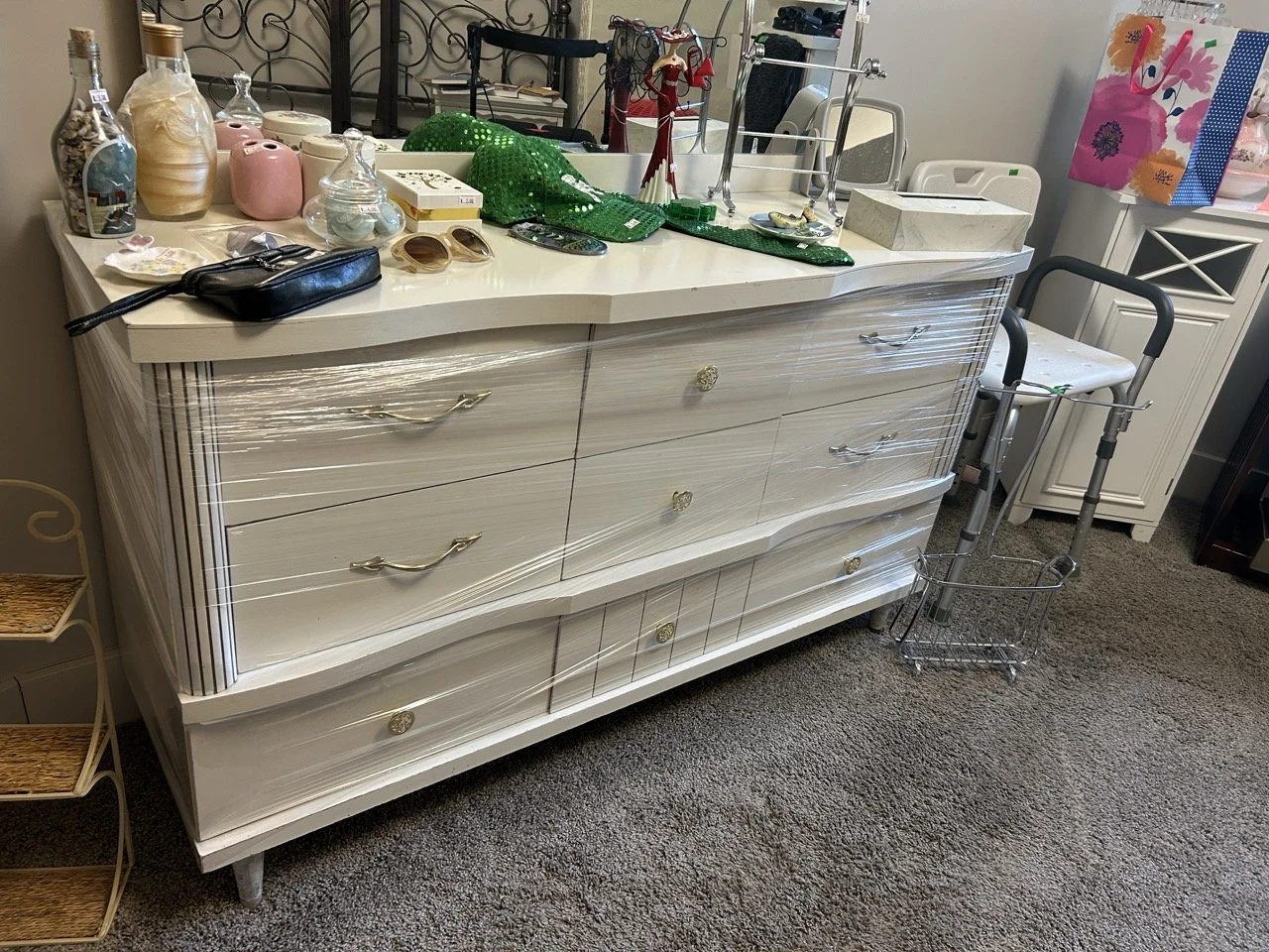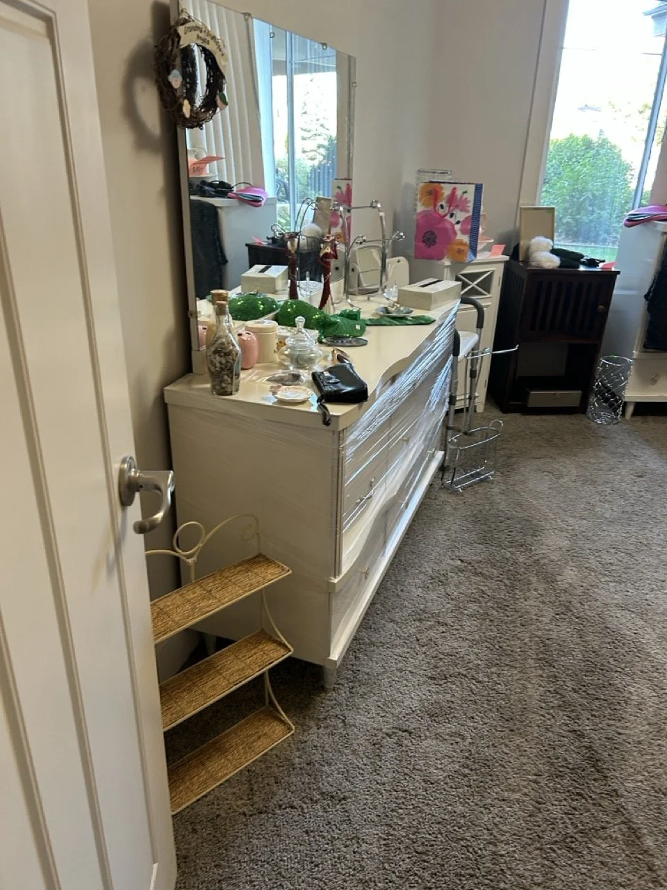 ◦ (Four drawer) white dresser, and white nightstand