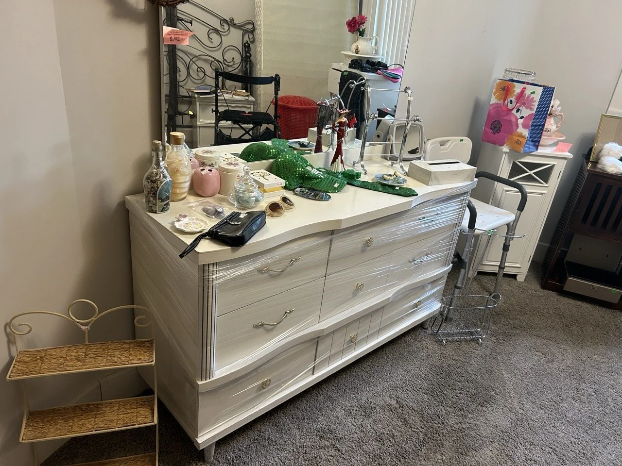◦ White dresser with mirror $102