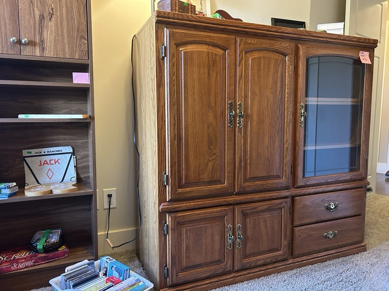 ◦ China cabinet $60 with glass behind the China cabinet