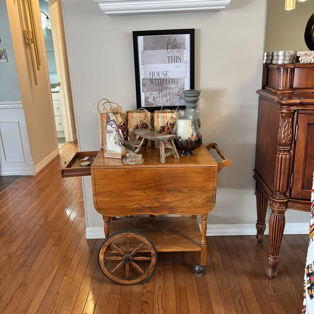 This sale is worth the wait with a house and two garages filled with a selection of amazing furniture (including gorgeous reupholstered seating, an adjustable bed, gorgeous tables, and more!), glassware, kitchen appliances, electronics, tools, collectibles, decorations, and more!