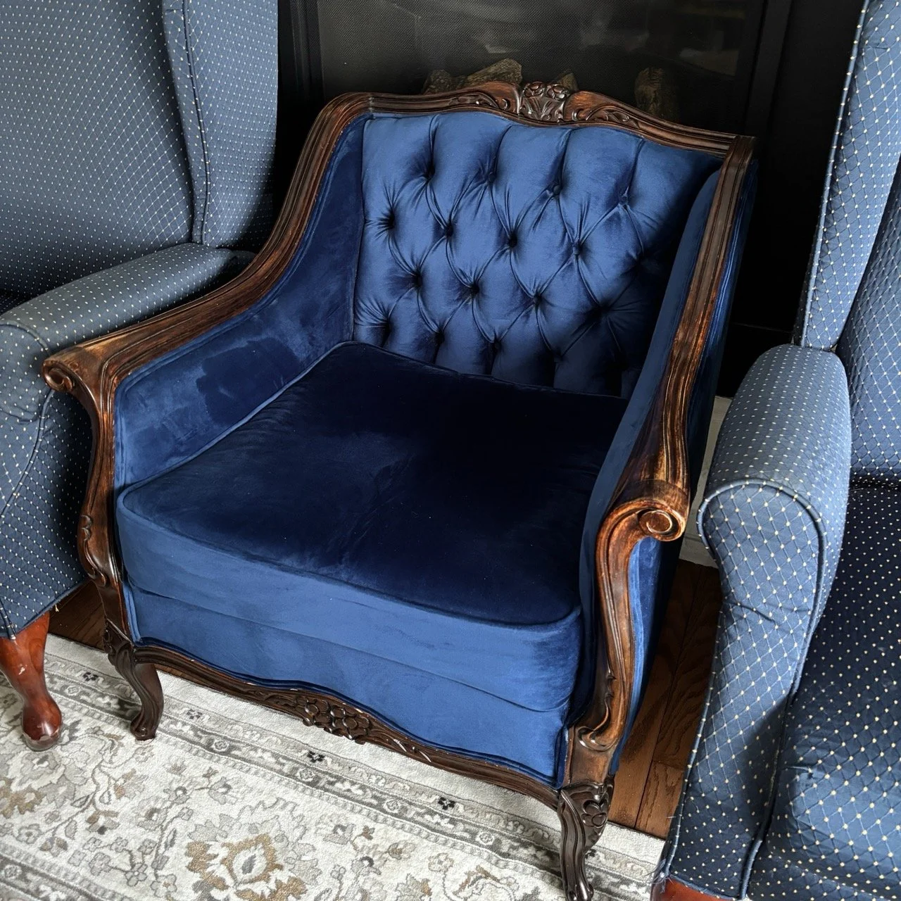 RECENTLY REUPHOLSTERED Blue Chair $375